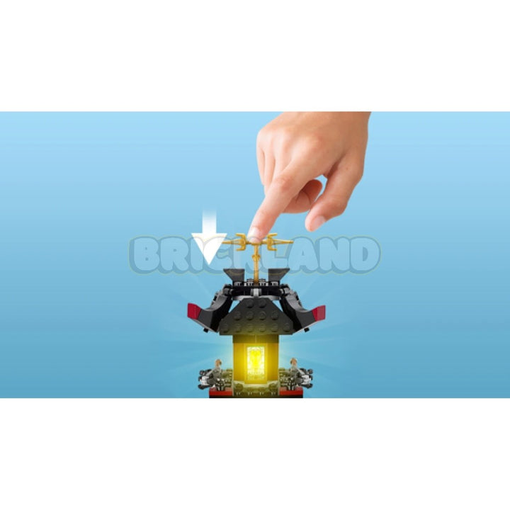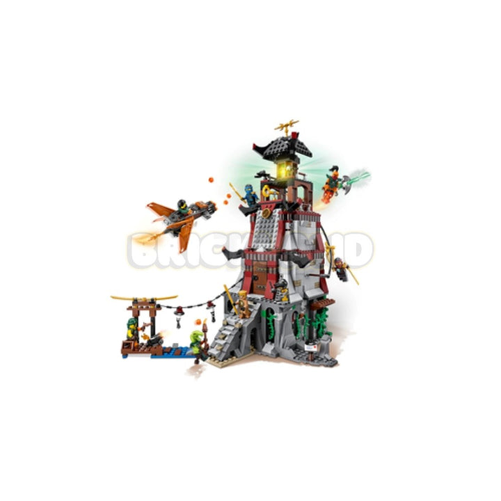 • המגדלור נפתח למשחק קל וכולל מדרגות כניסה עם פונקציית מלכודת, מעבדה נסתרת במרתף (עם שולחן מעבדה) וכלא, פונקציית רצפה מתמוטטת, משגר קפיצי מוסתר, 2 קשתות ירי יורות אבני לגו, 4 חרבות זהב, סאי זהוב, אלמנטים של קירות נינג'ה, צינור למיני-פיגורינות להחליק לתקיפה או בריחה, פונקציה להפלת דינמיט בעזרת מנגנון ידני, ופונקציית לבנה מוארת זוהרת בחלק העליון של המגדל.