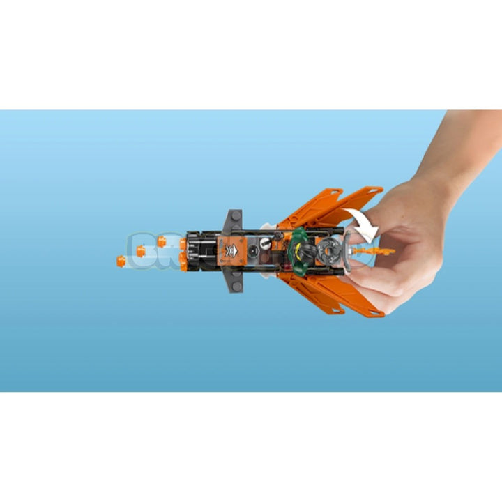 • מטוס פיראטי השמיים כולל יורה מהיר עם 6 אבני לגו, 2 חרבות פיראטים ניתקות ואלמנט פליטת להבה שקופה.