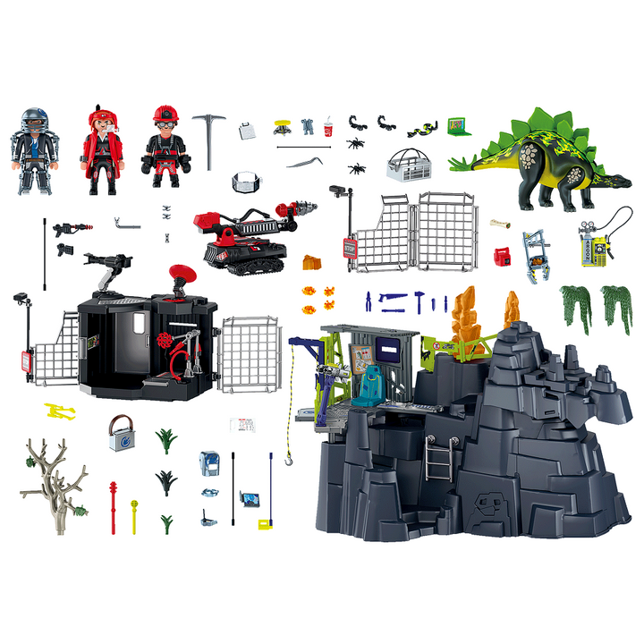 היכונו להרפתקאות מרגשות בסלע הדינוזאורים של פליימוביל!הצטרפו לאיאן ולצוות שלו בזמן שהם משחררים את הדינוזאורים הכלואים בסלע הזה בצורת דינוזאור.טפסו לפסגת ההר שם תגלו מחנה עם כיסא מסתובב, קנונים מתפקדים ומגלשה נסתרת שניתן להשתמש בה לבריחה מהירה. שימו לב היטב לצד השני של הסלע, שם ממוקם מחנה רובוטי הקרב.כאן, הם...