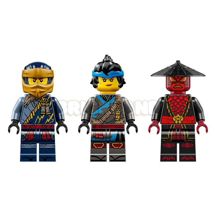 הסט כולל גם 3 דמויות מיניפיג מרשימות: הלוחמים האמיצים רוג וניה, כל אחד מהם מצויד בחרב קטאנה מוזהבת, והנבל דראקס עם להב קריסטל שקוף ומסתורי – מושלם למשחקי דמיון של קרבות בין טוב לרע.