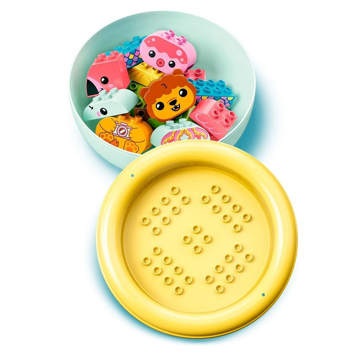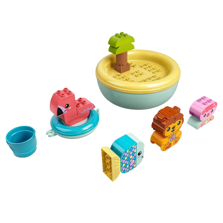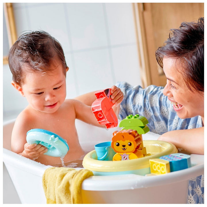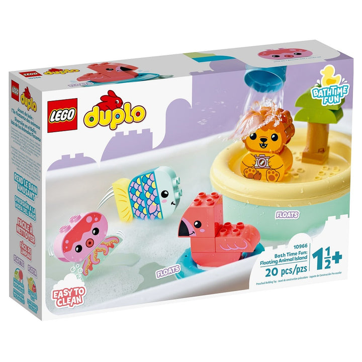 מעולם לא היה כיף יותר לעשות אמבטיה! הפעוטות יוכלו לשחק עם אריה ידידותי העומד על אי צף, פלמינגו ששוחה בתוך טבעת, ודג ותמנון ששוחים במים. תוכלו להפריד את האי לשני חלקים צפים - וכאשר תסיימו תוכלו לנקות את החלקים בקלות וגם לסדר אותם ביחד. לגילאי 1.5 ומעלה 20 חלקים סדרה לגו דופלו...