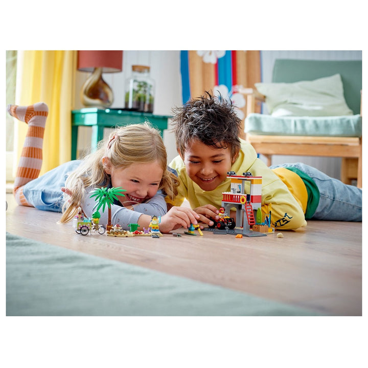 אספו את האשפה מהקן של הצב, וסעו ברכב שטח העמוס בציוד להצלת המתרחצים בלגו סיטי.